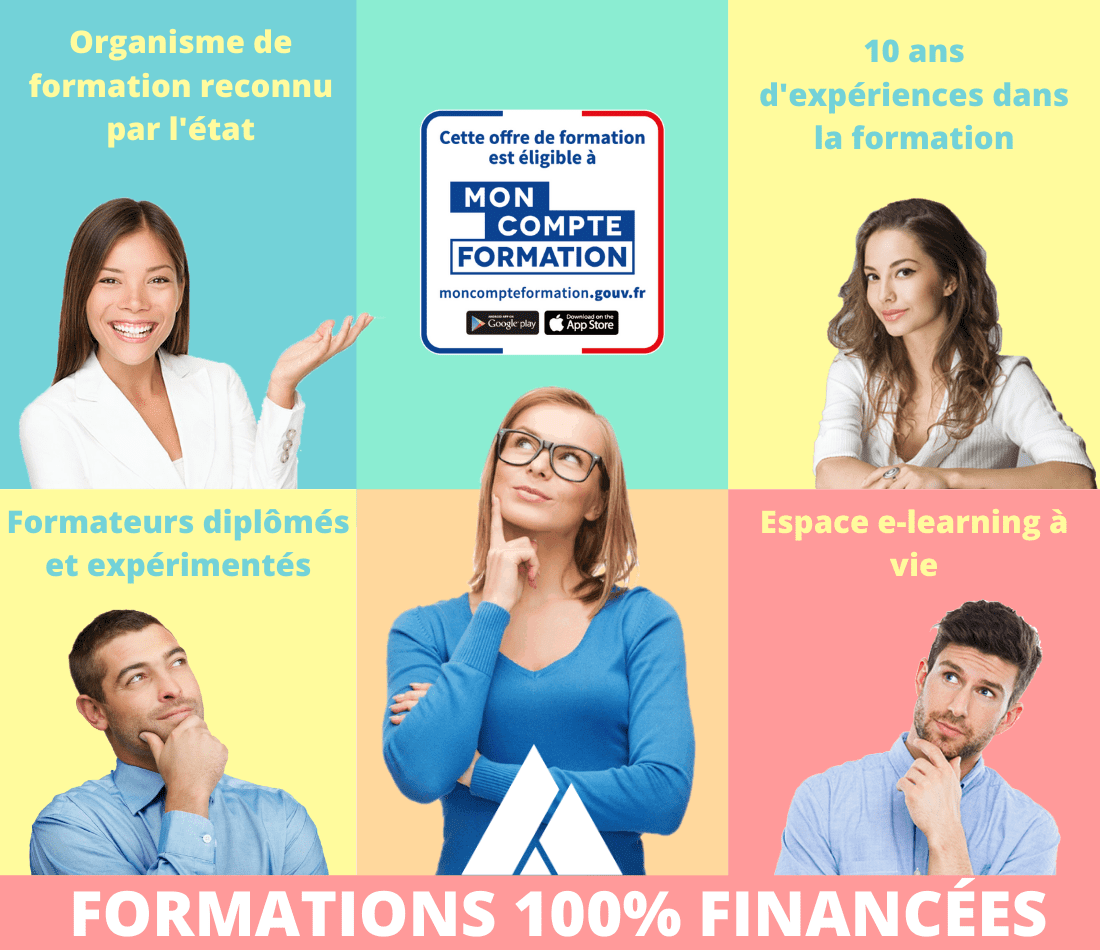 finançables par Pôle emploi, et par les OPCO / OPCA. Contactez nous pour monter le dossier de formation.